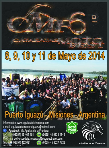 Localizada na Tríplice Fronteira (Brasil, Argentina e Paraguai) a cidade de Puerto Iguazú na Argentina, mais uma vez ira se transformar na CAPITAL INTERNACIONAL DO MOTOCICLISMO, um evento que você jamais irá esquecer.