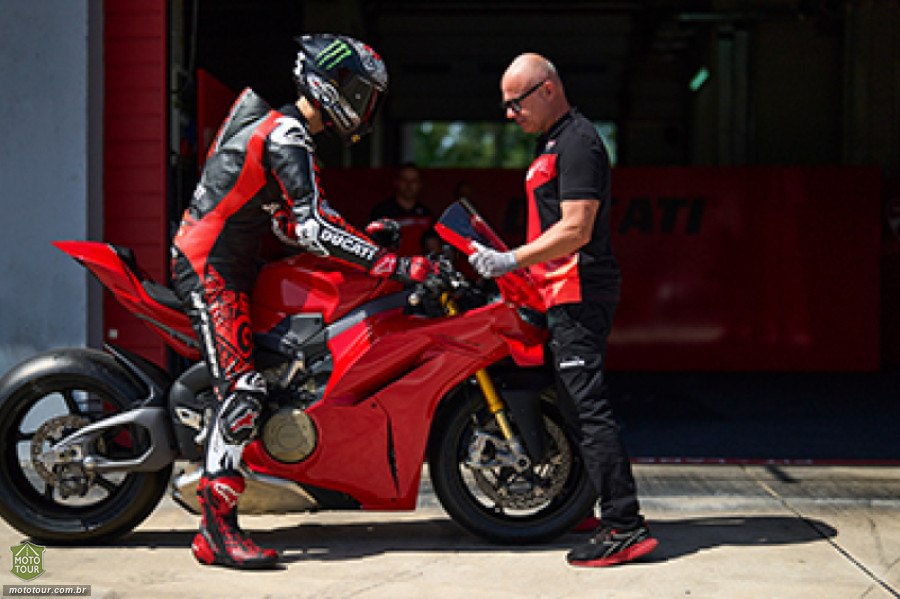 A versão V4S pesa apenas 187 kg, dois a menos que o modelo anterior, alcançando uma relação peso/potência de 1,15 cv/kg. Mesmo dentro das normas Euro5+, a Ducati conseguiu reduzir massa e otimizar a eficiência do motor. Nos testes do “2024 Race of Champions”, o novo modelo mostrou serviço: foi um segundo mais rápido que a geração 2022, registrando 1’35’’051 — um avanço significativo em termos de desempenho.